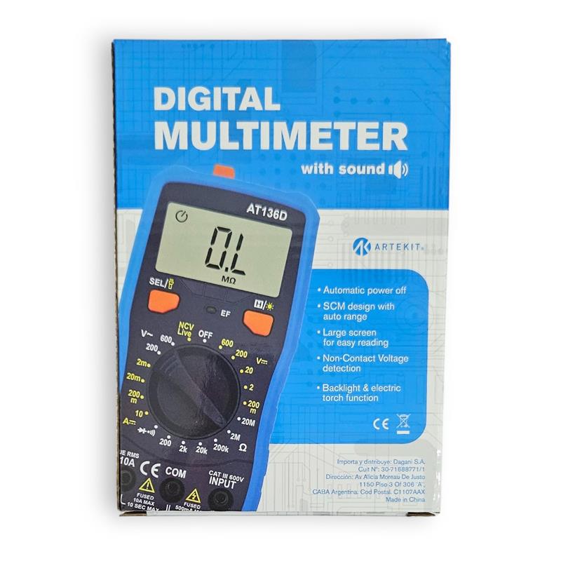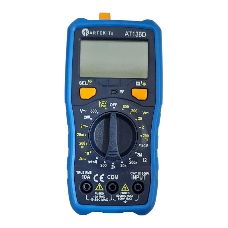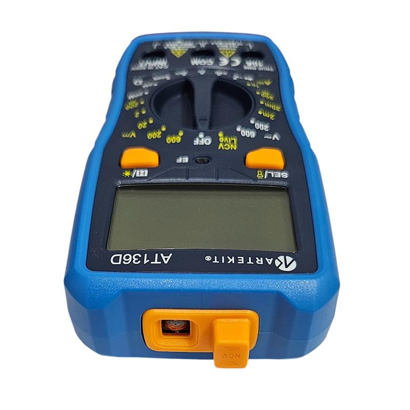 Tester digital. DCV: 200m-2-20-200-600V ±0.5%. ACV: 200-600V ±1.0%. DCA: 2m-20m-200m-10A ±1.8%. Resistencia: 200-2K-20K-200K-2M-20M? ±1.0%. Tamaño LCD: 55x28mm. Max display: 1999. Indicador de batería baja. Protección de sobrecarga. Test de diodo. Test de continuidad del buzzer. Retención de lectura (HOLD). Test NCV. Batería: 2x 1.5V AAA (no incluída). Tamaño del producto: 154×75×35mm. Peso: aprox. 182g
