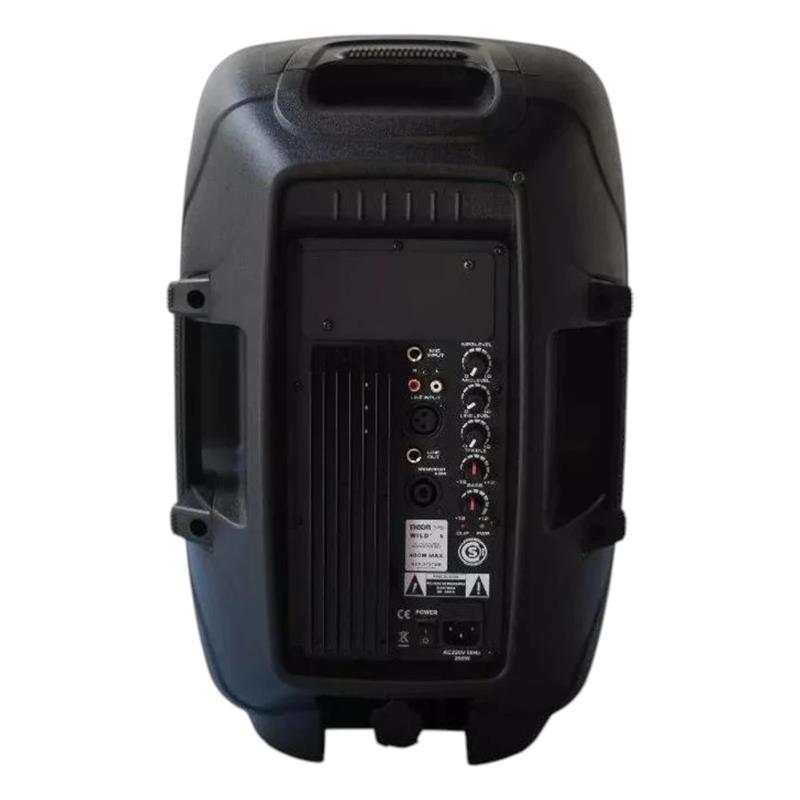 Bafle potenciado de 8" de dos  vías. Woofer de 8". 8 Ohms,  bobina de 1,5" y driver de  titanio de 25mm. Cuenta con  entradas de microfono (Jack  6,5), salida y entrada  (RCA) de  linea, control de tono y salida  plug 6,5 de linkeo, anclaje para