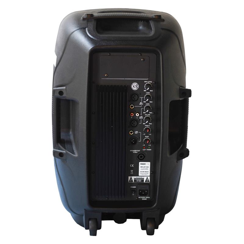 Bafle potenciado de 12" de dos vías con woofer de 12". 8 Ohms, bobina de 2" y driver de titanio de 34mm. Cuenta con entradas de microfono (XLR/ Jack 6,5), salida y entrada ( RCA) de linea, cntrol de tono y salida Speakon de linkeo, ancla