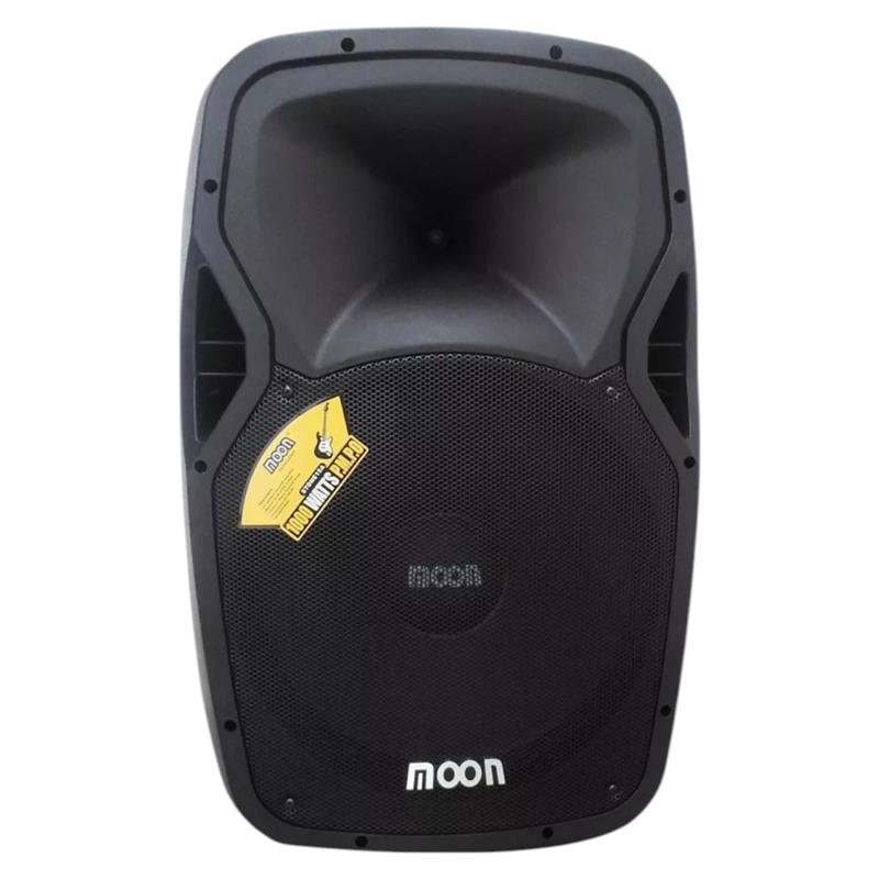 Bafle potenciado con woofer de 15" 8 Ohm, bobina de 1,5", driver de titanio, entrada de microfono TRS, entrada de linea RCA/XLR, salida de linea XLR, salida speakon de linkeo, reproductor bluetooth/USB/SD/radio FM, anclaje para pie de bafle y cancamo. Potencia 150W rms 480w PMPO. Medidas: 75cmx40cmx50cm Peso: 14,37kg Cod. EAN13: 0368722475538