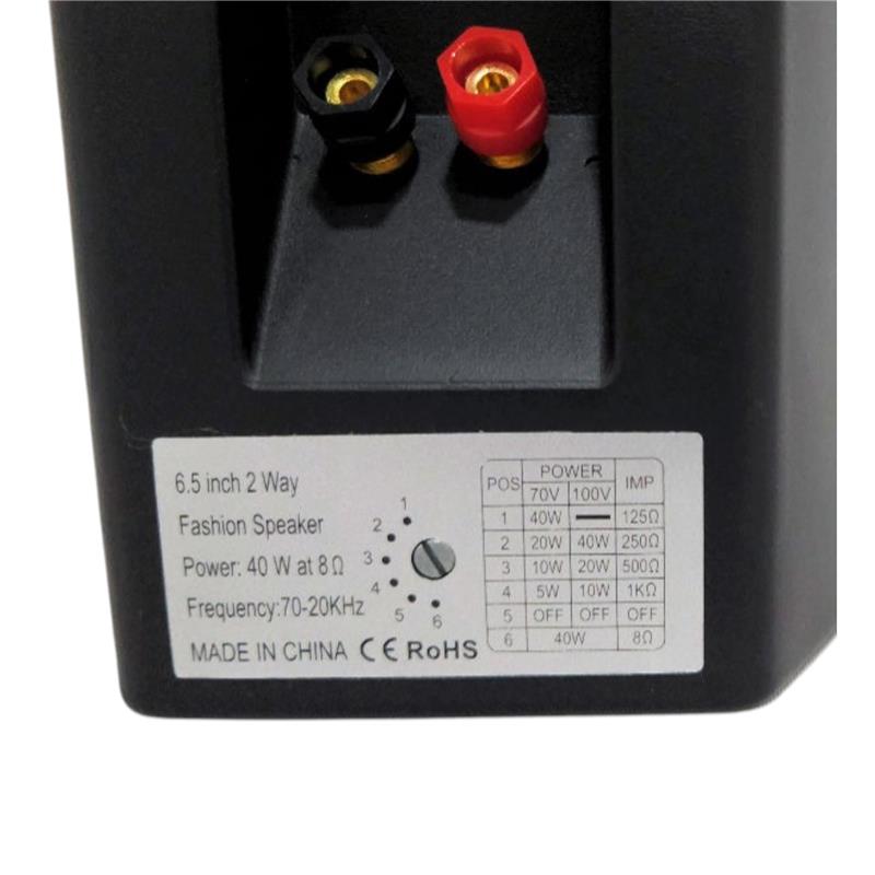 Bafle de 6.5 pulgadas. Potencia: 30W RMS. Impedancia: 8 Ohms - 70/100v. Frecuencia: 70Hz-20KHz. SPL (@1W/m): 91dB. Material: PP. Color negro. Con tweeter de 1 pulgada. Con transformador de línea. Incluye soporte