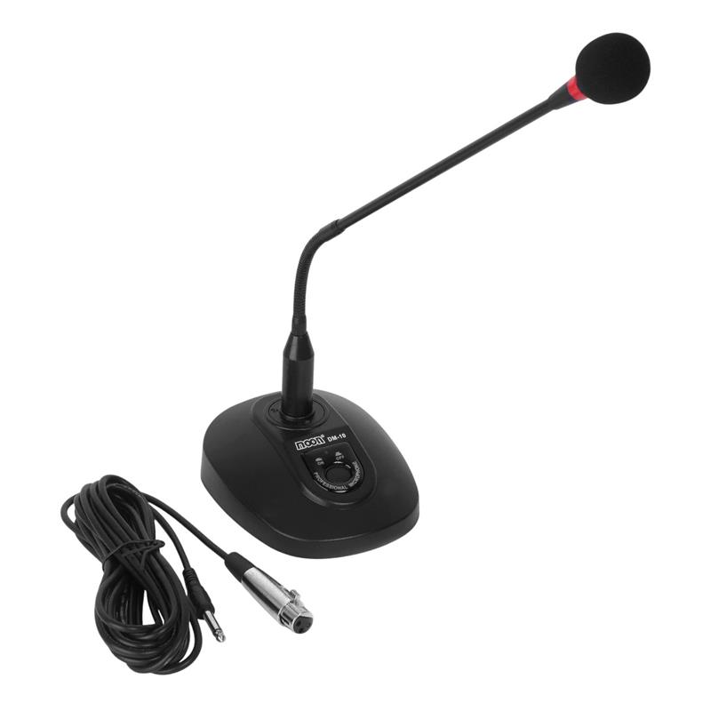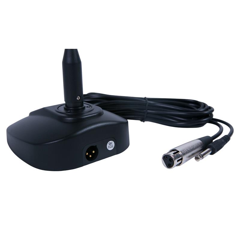 Microfono unidireccional  (condensador) de conferencia  (cuello de ganso) negro.  incluye base con boton de  encendido con indicador led,  cable de 6 metros canon/plug,  alimentacion phantom o con  dos pilas AA (no incluidas) y  antipop . Sensibilidad: --33+/-1dB.  • Respuesta de frecuencia: 100-13000Hz. Cod. 17791234567895