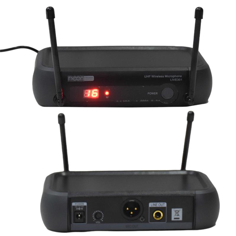 Características principales: Rango de frecuencia 620-680Mhz; señal-ratio: >100dB; rango dinámico de respuesta: >100dB; modulación: análoga; alcance: 50mts; respuesta de frecuencia: +/-40Hz-16KHz; distorsión de audio: <0.02%; estabilidad de frecuencia: +/-0.03%. Características del receptor: modo de oscilación: KT; sensibilidad de recepción: 5dBuV; voltaje: DC12V-15V; radio interferencia de canal: >80db; relación señal-ruido: >100Db; voltaje AC 100-240V. Características del transmisor (micrófono): potencia de salida: 8mW; unidireccional; corriente de trabajo: 100mA; modo de oscilación: KT; tipo de transmisor: dinámico; capacidad de la batería: 1200mAh; voltaje medido: 3.7V; tiempo de carga: 2 horas; duración de la batería: 8-10 horas. Con batería de litio recargable.