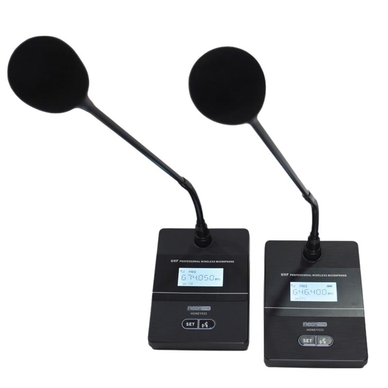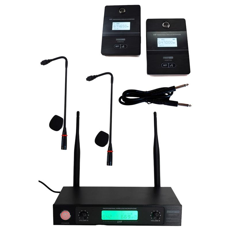 Sistema inalambrico UHF doble de conferencia con 50 canales seleccionables y display LCD.