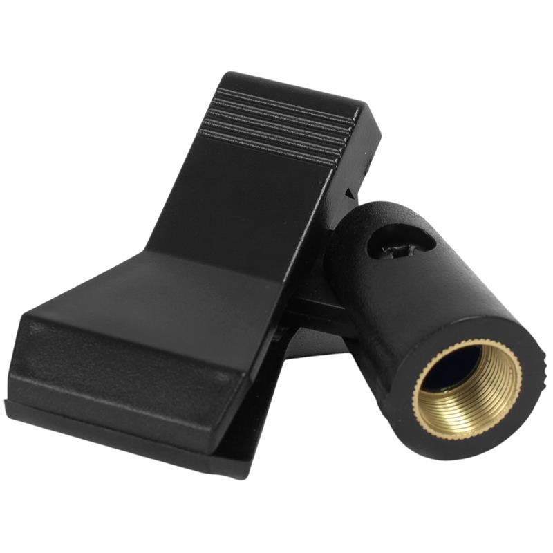 Soporte para micrófono plástico. Con rosca de metalica. Tipo pinza.