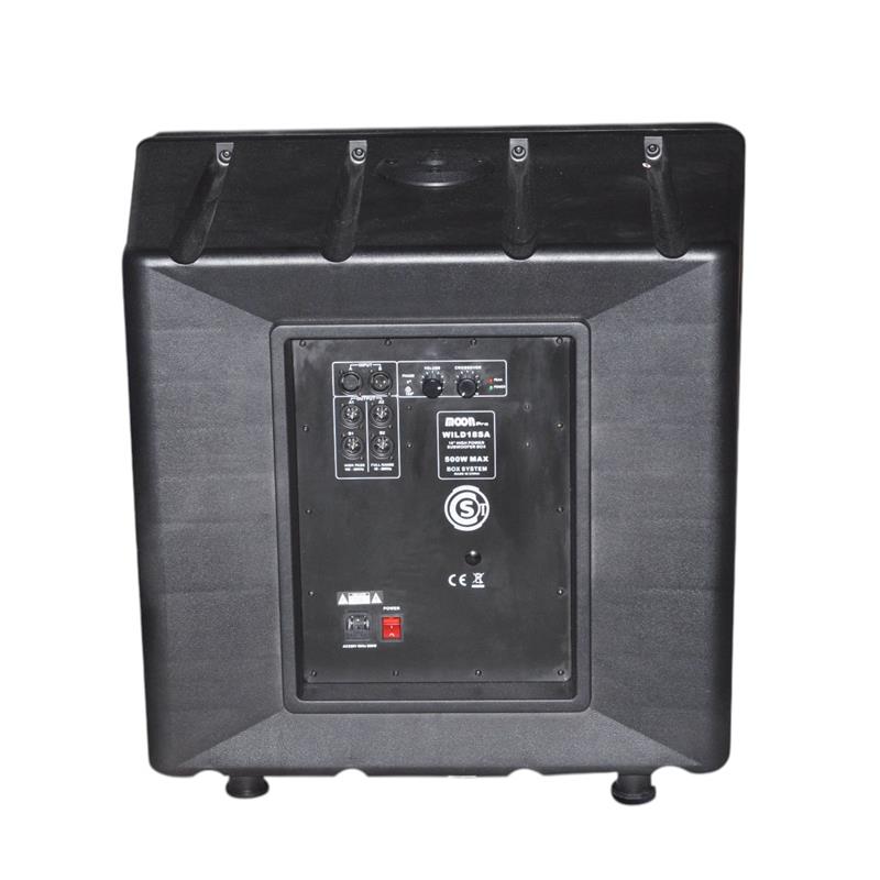 Bafle potenciad de 18" sublow 400 Watts/3200 WattsPMPO. Cuenta con crossover, dos entradas balanceadas xlr y 4 salidas para linkeo de senal, anclaje para pie de bafle superior, manijas laterales . Woofer de 18" 8 Ohm, bobina de 4" . 72cm